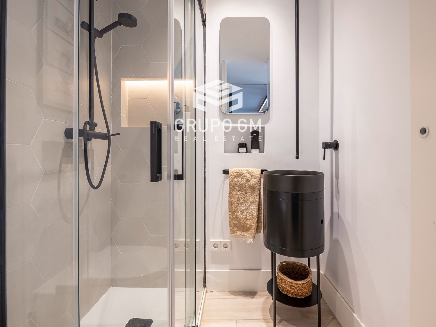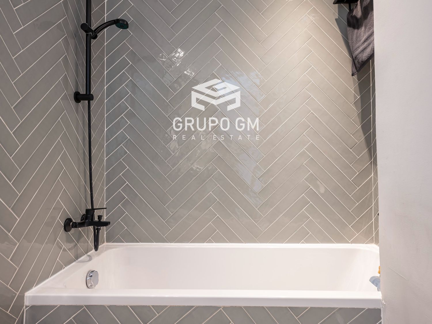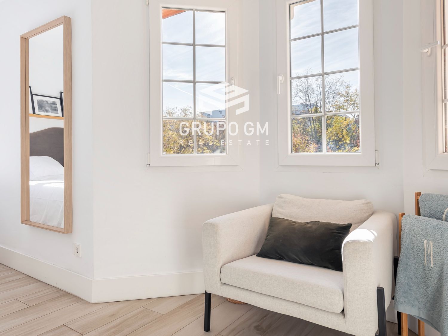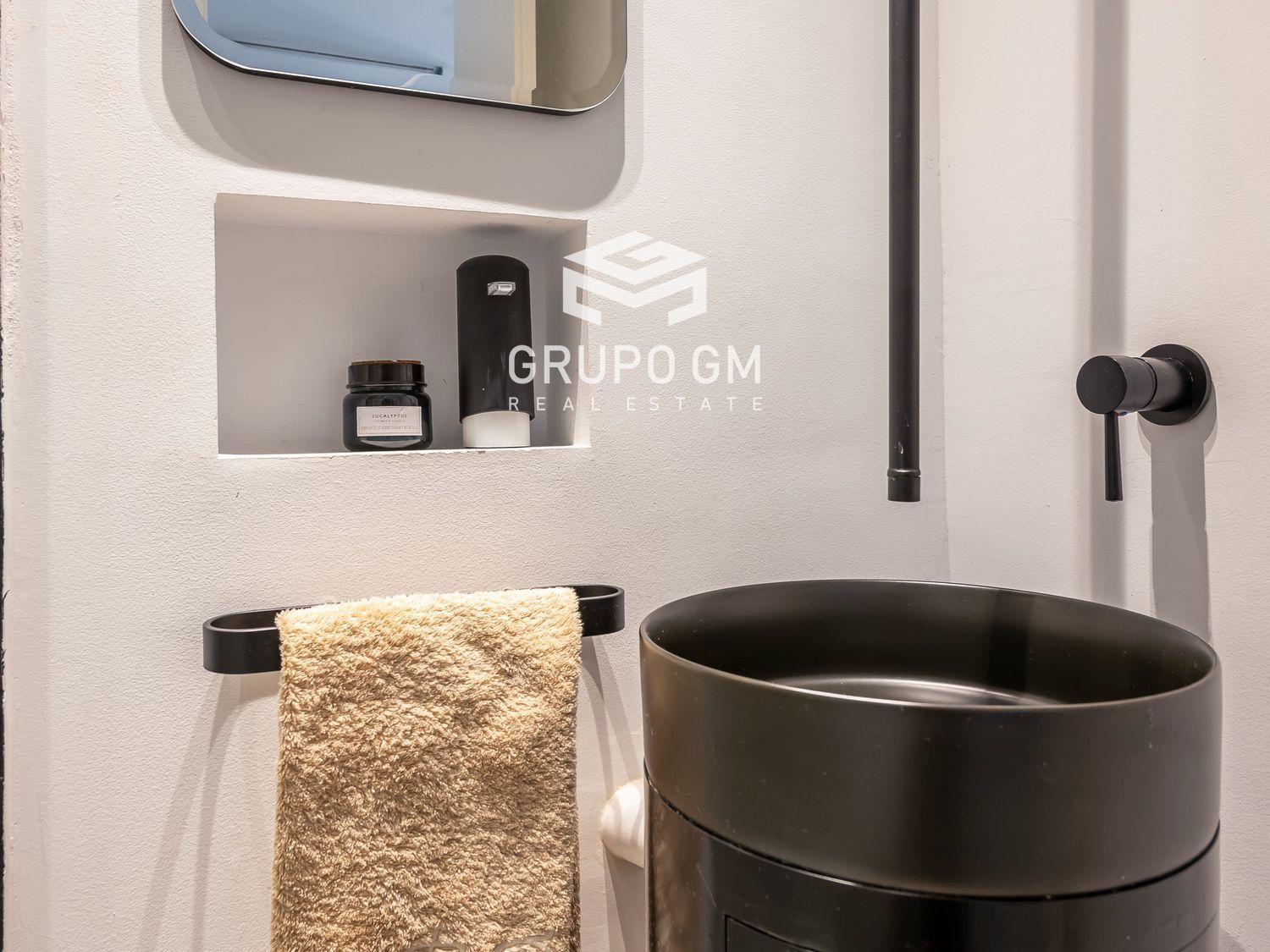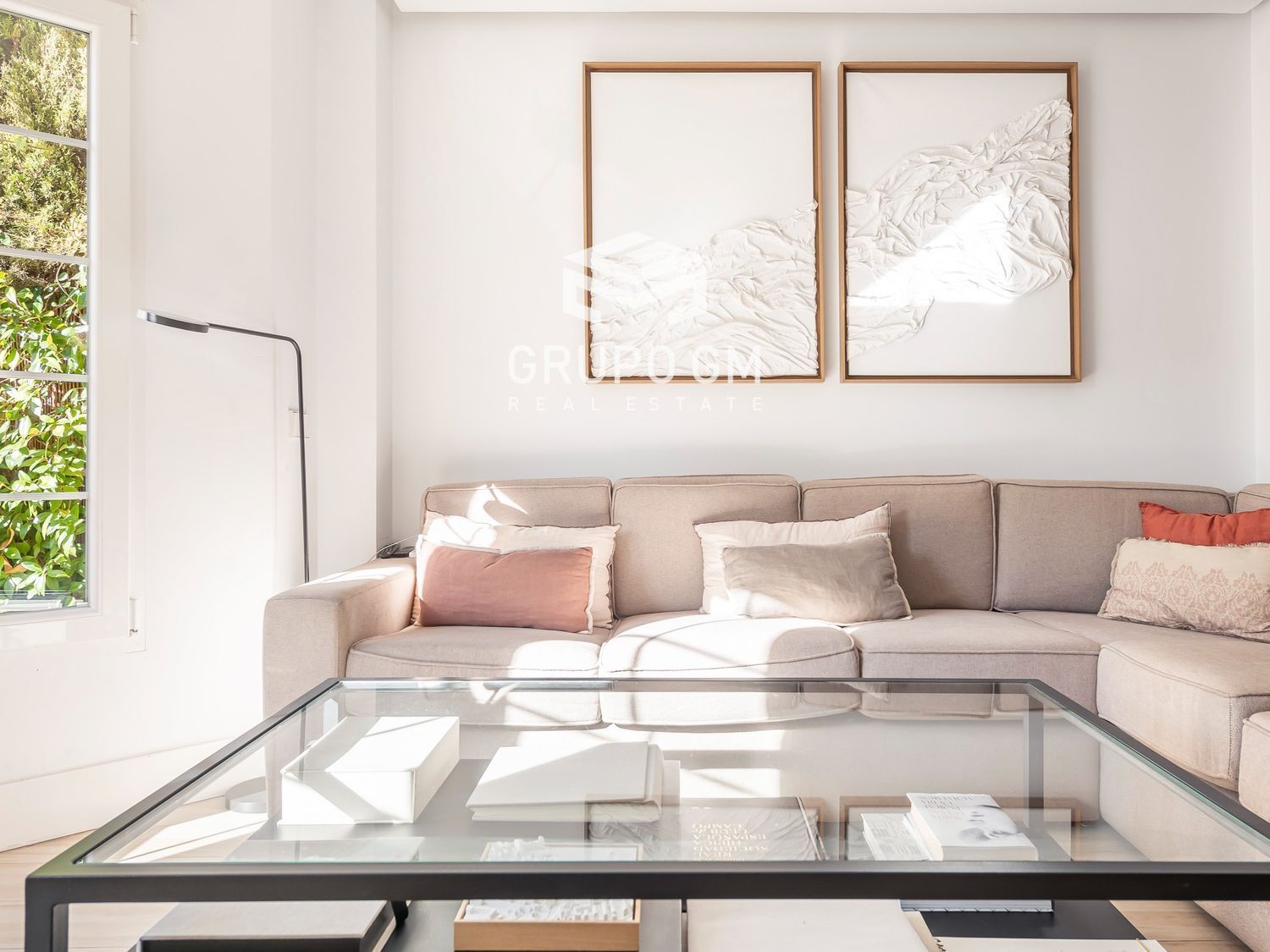 La planta principal incluye salón-comedor con gran entrada de luz natural, cocina independiente conectada visualmente mediante ventanal, habitación de servicio, baño completo y terraza. En el exterior, jardín solado de aproximadamente 25 m².